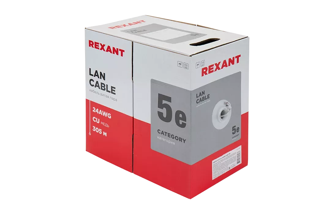 01-0023 Кабель витая пара REXANT UTP 2PR 24AWG, CAT5e, бухта 305 м, серый