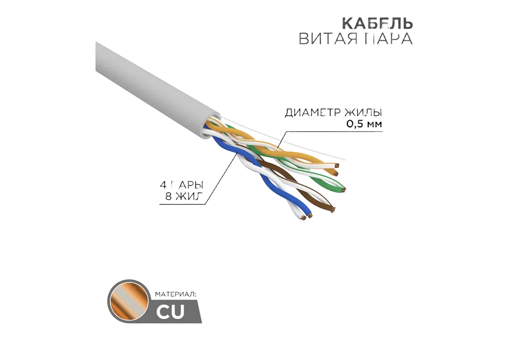 01-0043 Кабель витая пара REXANT UTP 4PR 24AWG, CAT5e (бухта 305 м)