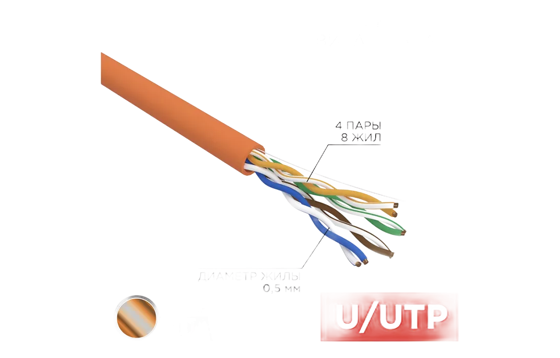 На кабеле нанесена маркировка с указанием категории кабеля, количества пар, типа и диаметра медного проводника. Кабель поставляется в картонных коробках на катушках по 305 метров.