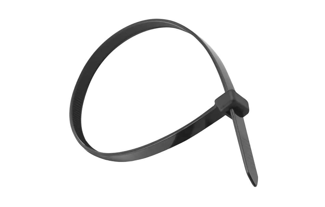 Представляет собой гибкую полоску из нейлона высокой прочности (полиамид-6,6) с замком на конце. Полиамид-6,6 — кристаллизующийся конструкционный материал, имеющий высокую твердость и механическую прочность, отличающийся высокими электроизоляционными свойствами. Имеет высокое сопротивление к основаниям, маслам, смазочным материалам, хлоридным растворителям. Не содержит галогенов.
