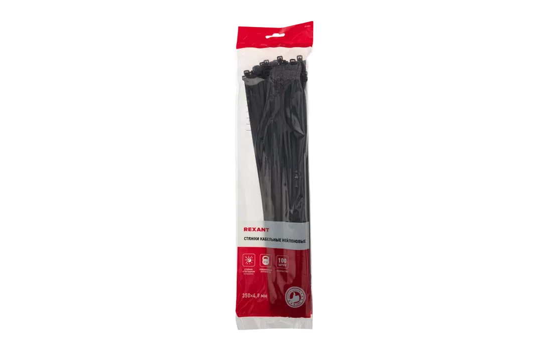 07-0351 Хомут-стяжка кабельная нейлоновая REXANT 350 x4,8 мм, черная, упаковка 100 шт.