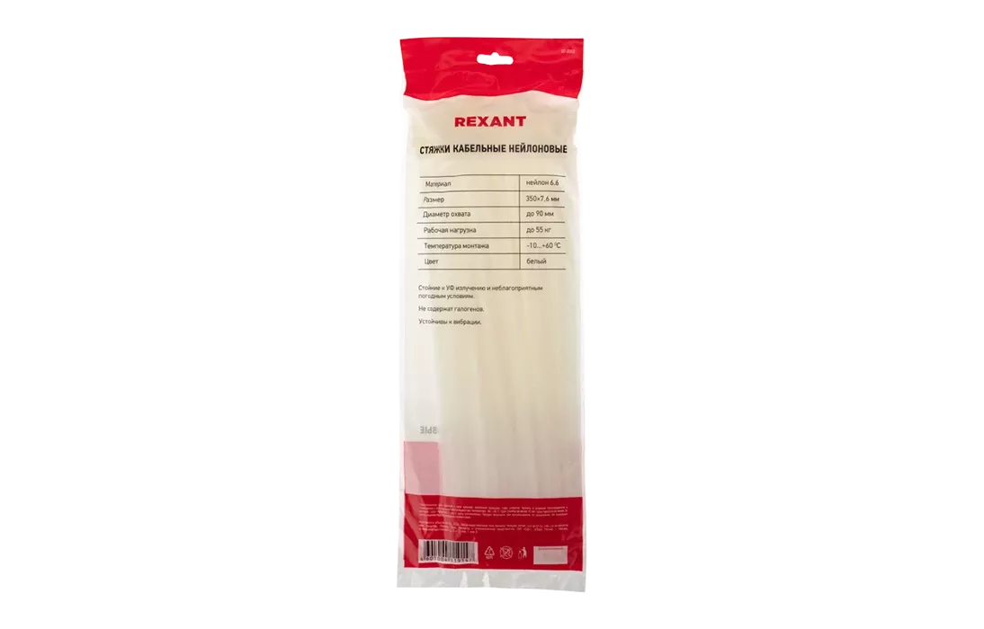 07-0352 Хомут-стяжка кабельная нейлоновая REXANT 350 x7,6 мм, белая, упаковка 100 шт.