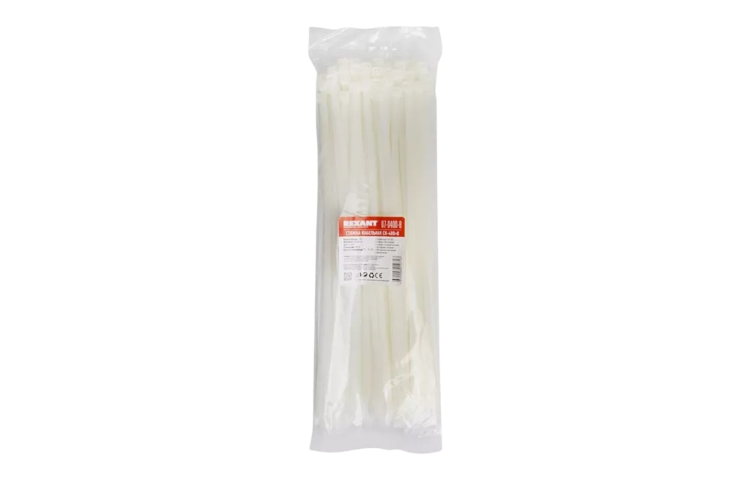 07-0400-8 Хомут-стяжка кабельная нейлоновая REXANT 400 x7,6 мм, белая, упаковка 100 шт.