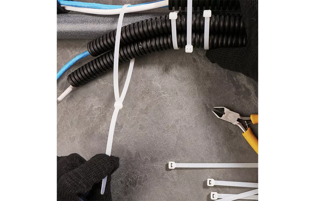 Предназначен для крепления или обвязки в жгут кабелей и проводов, крепления гибких гофротруб, а также других предметов к несущей поверхности или для соединения между собой. Такая стяжка используется при проведении электромонтажных работ, при монтаже структурированных кабельных систем, для бытовых нужд, а также в других отраслях народного хозяйства.