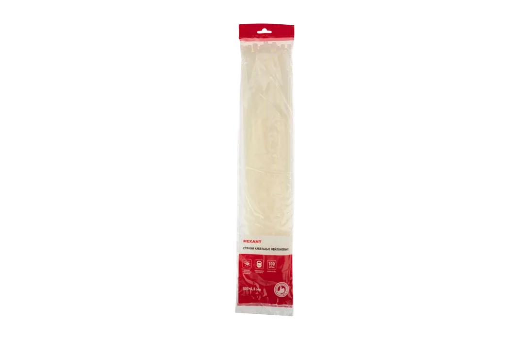 07-0500 Хомут-стяжка кабельная нейлоновая REXANT 500 x4,8 мм, белая, упаковка 100 шт.