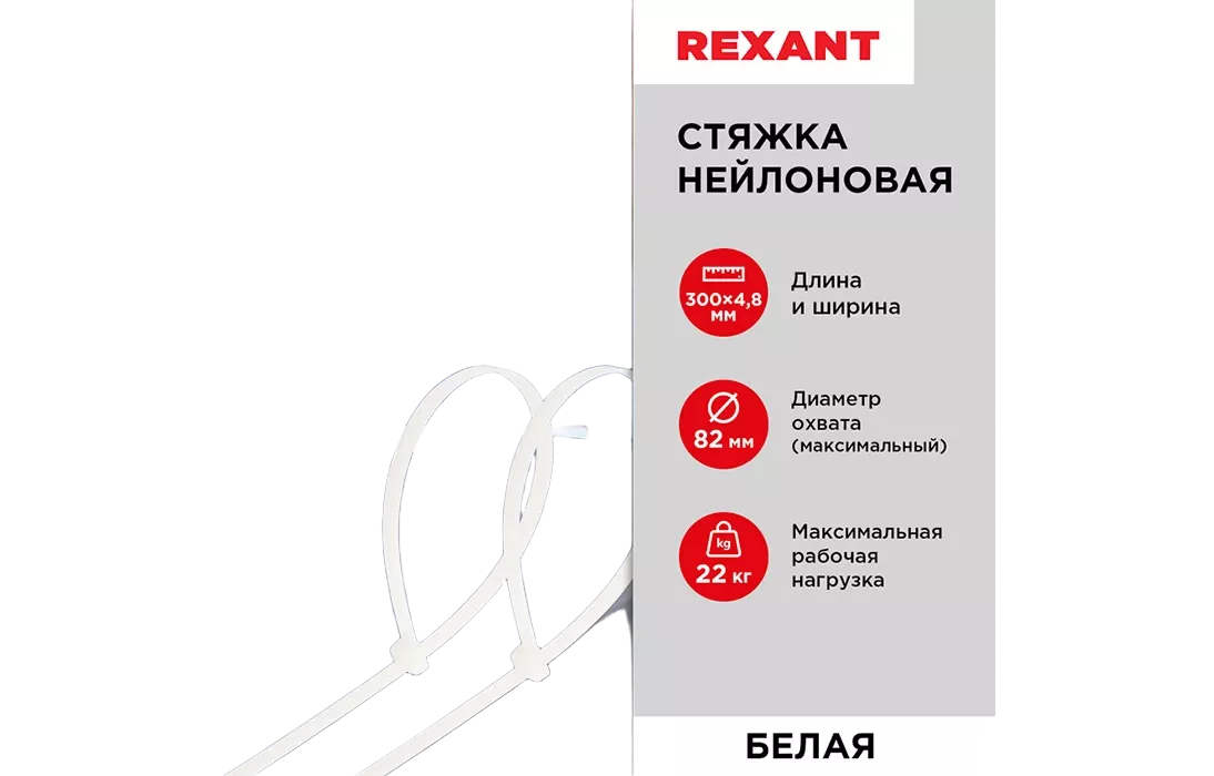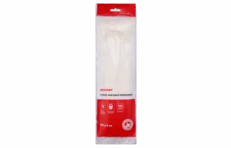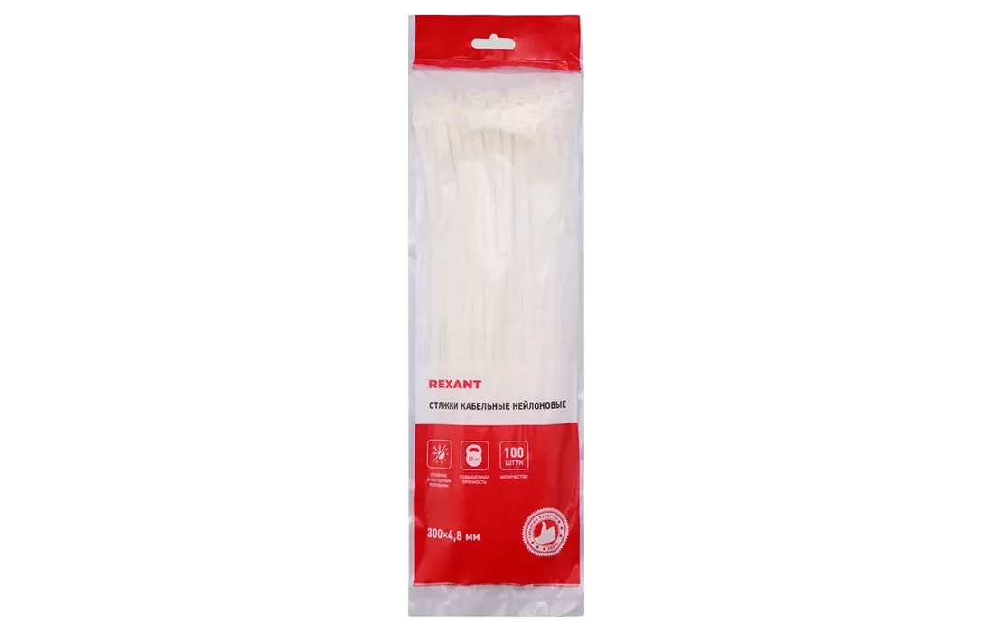 07-1302 Хомут-стяжка кабельная нейлоновая REXANT 300 x4,8 мм, белая, упаковка 100 шт.