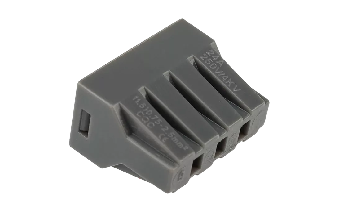 Диаметр соединяемых проводов должен составлять в сечении от 1,0 до 2,5 мм². Перед монтажом с соединяемых проводников необходимо снять изоляцию в соответствии с обозначениями на корпусе клеммы (9-12 мм). Зачищенный участок с монтажной стороны не должен иметь сильных изгибов. Подключение осуществляется способом проталкивания до упора очищенного от изоляции провода в свободное гнездо клеммы.