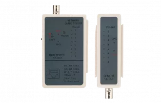 Тестер кабеля RJ-45 + BNC 5248 REXANT предназначен для тестирования коаксиальных кабелей и кабелей на основе витых пар. Тестер состоит из двух функциональных блоков — передатчика и приемника, которые подключаются к концам кабельной линии через разъемы RJ-45 или BNC.