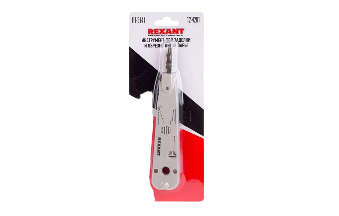 Инструмент REXANT HT-3141 предназначен для заделки и обрезки проводников во врезные контакты на кроссах, патч-панелях, розетках и модулях, заделки контактов 110 типа и типа KRONE.
