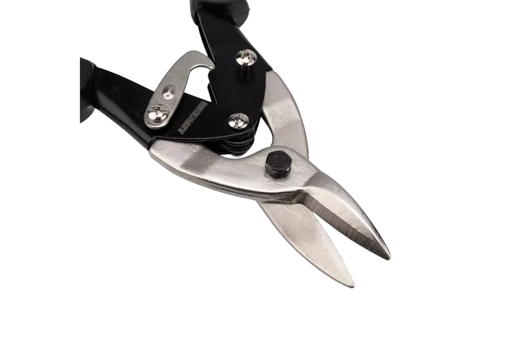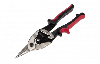 Ножницы предназначены для прямого реза металла толщиной до 1,2 мм и нержавеющей листовой стали толщиной 0,7 мм. Хромованадиевый сплав, из которого изготовлен инструмент, обладает такими свойствами, как прочность, жесткость и устойчивость к износу. Во время прокаливания сплав менее подвержен деформациям и потере первоначальной формы, чем другие типы инструментальной стали. Никелевое покрытие защищает ножницы от образования ржавчины, тем самым продлевает их срок службы. Ножницы оснащены усиленными двухкомпонентными рукоятками, которые имеют специальную форму и обеспечивают дополнительный комфорт при работе. Для удобства хранения и транспортировки предусмотрен запорный механизм, который удерживает режущие кромки ножниц в закрытом положении.