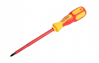 Стержень отвертки из высококачественной хромованадиевой стали с оксидированным намагниченным наконечником покрыт специальным изоляционным материалом.