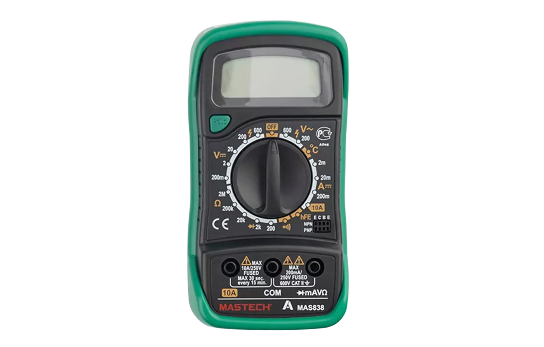 Прибор MAS838 является портативным мультиметром, компактные размеры позволяют всегда носить его с собой. Но, несмотря на малые размеры, данный мультиметр обладает широким функционалом и это выгодно отличает его от других.