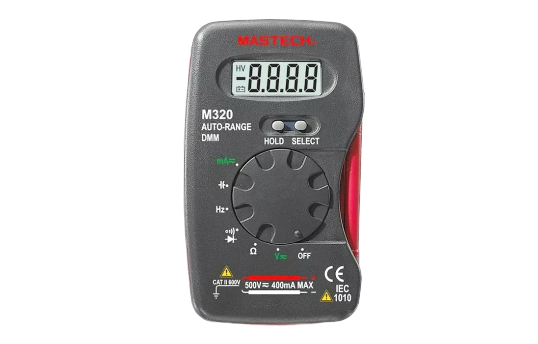 Инженеры старались максимально упростить прибор и поэтому с ним легко работать даже одной рукой. M320 имеет функцию автоматического выбора пределов измерений. В отличие от устаревших моделей, где вам приходилось вручную выставлять пределы, сейчас же нужно всего лишь выбрать, какой из параметров вы собираетесь измерять. Кроме того, у прибора усиленный переключатель, благодаря которому исключается возможность случайного нажатия.