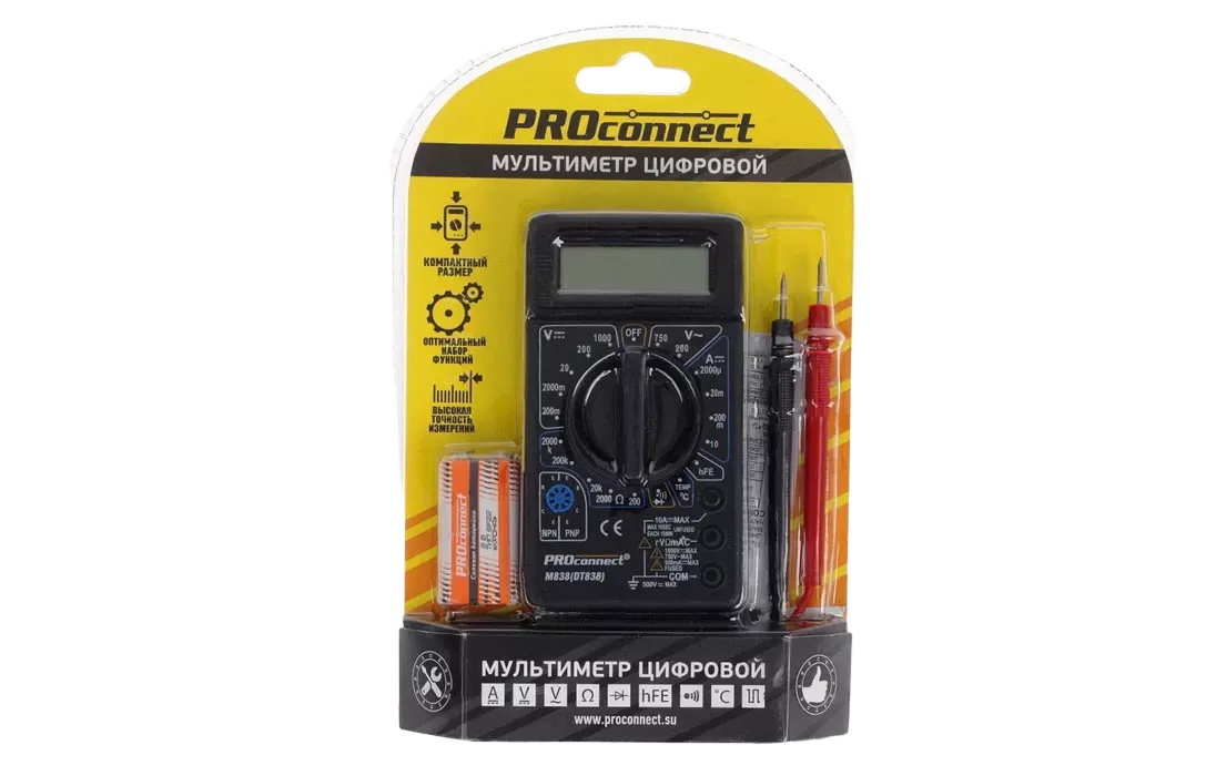 Прибор M838 является портативным мультиметром, компактные размеры позволяют всегда носить его с собой. Но, несмотря на малые размеры, данный мультиметр обладает широким функционалом и это выгодно отличает его от других.