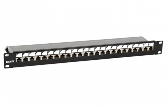 246037 Hyperline PP3-19-24-8P8C-C5E-SH-110D Патч-панель 19", 1U, 24 порта RJ-45 полн. экран., категория 5e, Dual IDC, ROHS, цвет черный