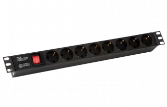 255002 Hyperline SHE19-8SH-S-IEC Блок розеток для 19" шкафов, горизонтальный, с выключателем с подсветкой, 8 розеток Schuko (10А), 250В, без кабеля пи
