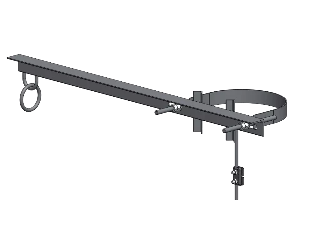 Узел подвески ВОК на железобетонных опорах КС, на кронштейне с кольцом выпускается в двух исполнениях 411307-ТМП-102 (130801-02942) и 411307-ТМП-102-01 (130801-02943), для опор диаметром 300-350 мм и 350-390 мм соответственно.