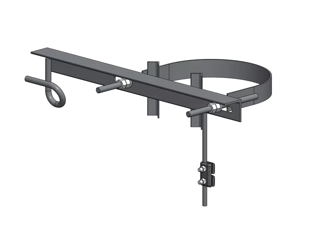 Узел подвески ВОК на железобетонных опорах КС на укороченном кронштейне с серьгой выпускается в двух исполнениях 411307-ТМП-120 (130801-03011) и 411307-ТМП-120-01 (130801-03012) для опор диаметром 300-350 мм и 350-390 мм соответственно.