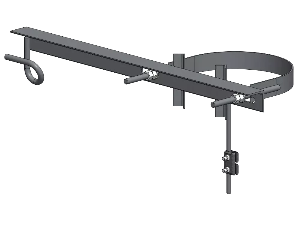 Узел подвески ВОК на железобетонных опорах КС на кронштейне с серьгой выпускается в двух исполнениях 411307-ТМП-121 (130801-03013) и 411307-ТМП-121-01 (130801-03014) для опор диаметром 300-350 мм и 350-390 мм соответственно.