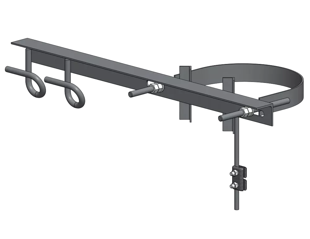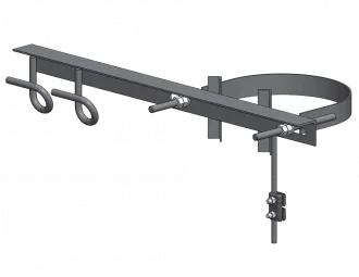 Узел подвески двух ВОК на железобетонных опорах КС, на укороченном кронштейне с серьгами выпускается в двух исполнениях 411307-ТМП-123 и 411307-ТМП-123-01 для опор диаметром 300-350 мм и 350-390 мм соответственно.