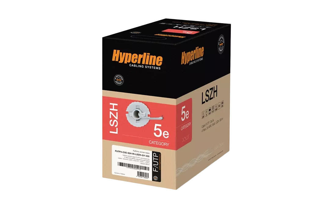 45788 Hyperline FUTP4-C5E-S24-IN-LSZH-GY-305 (305 м) Кабель витая пара F/UTP, категория 5e, 4 пары (24 AWG), одножильный (solid), экран - фольга, LSZH