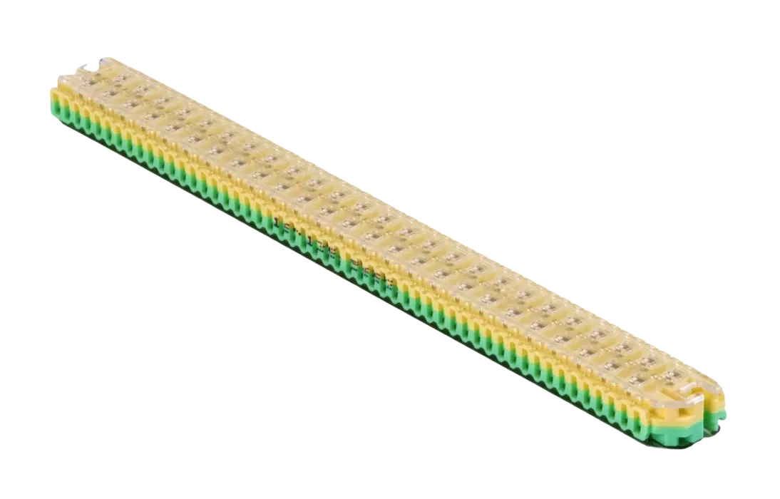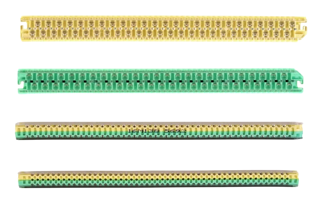 Предназначен для прямого сращивания 25 пар одновременно. При монтаже, жилы в нижней части модульного соединителя 4008-D/TR оказываются запрессованными в контактные элементы с созданием контакта, но не обрезанными. Такая конструкция позволяет подпараллелиться к действующему кабелю без перерыва связи, не разрывая шлейфа. Верхняя часть корпусов модульных соединителей 4008-D/TR окрашена в желтый цвет, а нижняя – в зеленый.