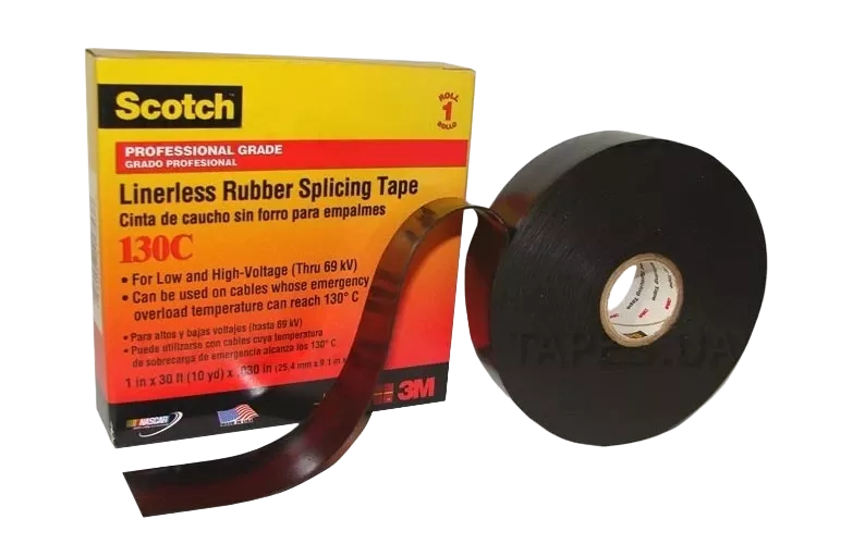 Резиновая лента Scotch ® 130C — самовулканизирующаяся изоляционная лента без разделительного лайнера на основе этиленпропиленовой резины (ЭПР) толщиной 0,76 мм с высокими электроизоляционными свойствами и повышенной теплопроводностью. Лента используется для соединения, оконцевания и ремонта проводов и разных типов кабеля. Температура применения при непрерывном воздействии — до 90 ˚C, кратковременно — до 130 ˚C. Отличные характеристики ленты в области изоляции и герметизации способствуют обеспечению надежной влагоизоляции и отсутствию полостей и пустот при нанесении. Лента может использоваться как изоляция при напряжениях до 69 кВ.