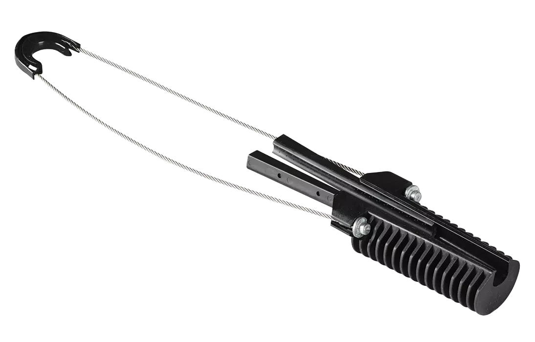 Предназначен для крепления оптического кабеля с внешним диэлектрическим силовым элементом (тросом). Позволяет просто и быстро закрепить кабель типа "8" за вынесенный диэлектрический трос. Нет необходимости оголять или же отделять несущий трос. Обеспечивает значительное сокращение продолжительности процесса подвес кабеля.