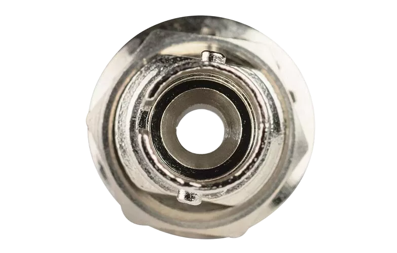 Корпус розетки сделан из латуни с никелевым покрытием. Стыковка наконечников оптических коннекторов осуществляется при помощи центрирующей втулки, изготовленной из циркониевой керамики. Фиксация коннекторов осуществляется с помощью резьбового соединения. Крепление розетки на адаптерной планке осуществляется с помощью шайбы-гровер и гайки. На резьбовой части крепёжного диаметра адаптера имеется фаска, образуя в сечении форму латинской буквы D.