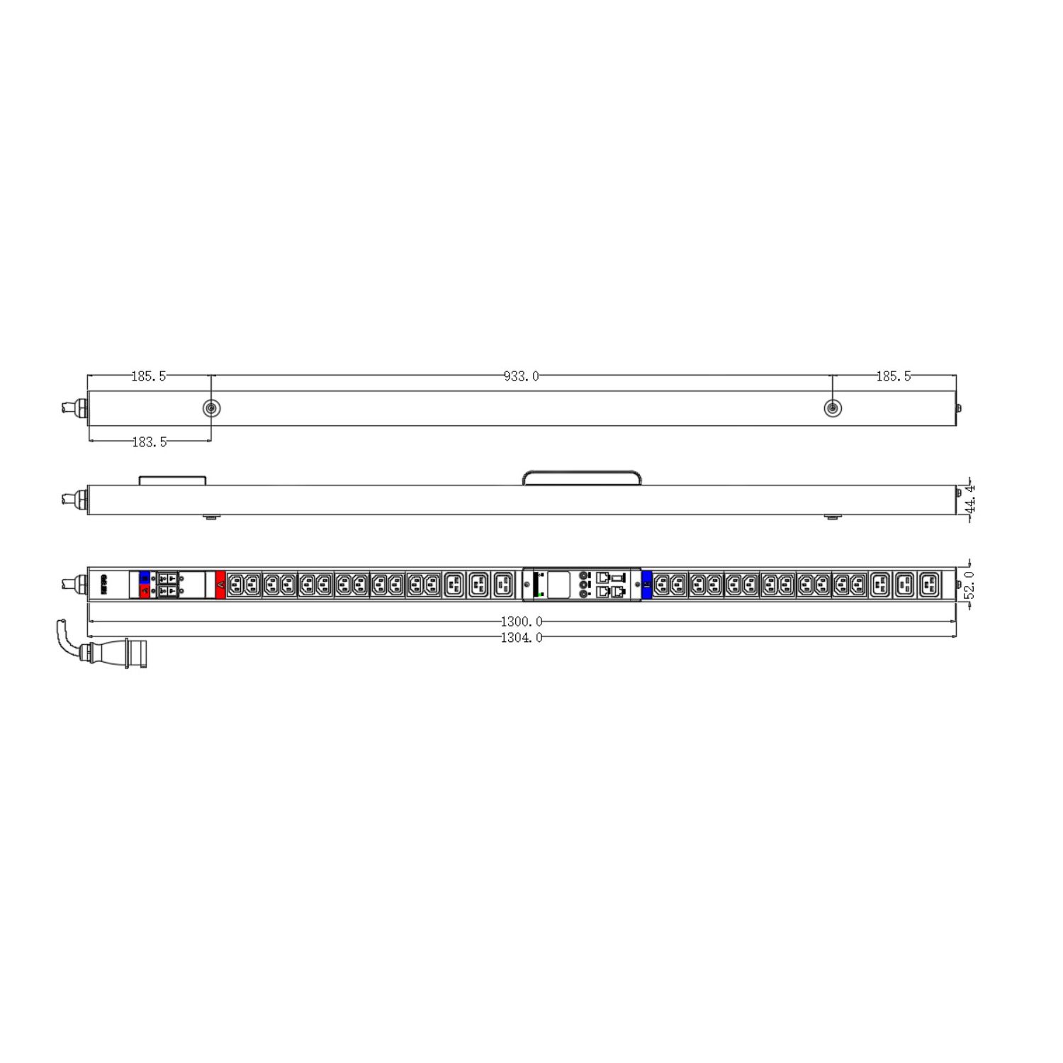 Блок распределения питания NTSS Metered, 1ф32А, 7.4кВт, 2 автоматических выключателя, (24)С13, (6)C19, 3м кабель с вилкой IEC 60309, 1324.50х52х44.4 мм