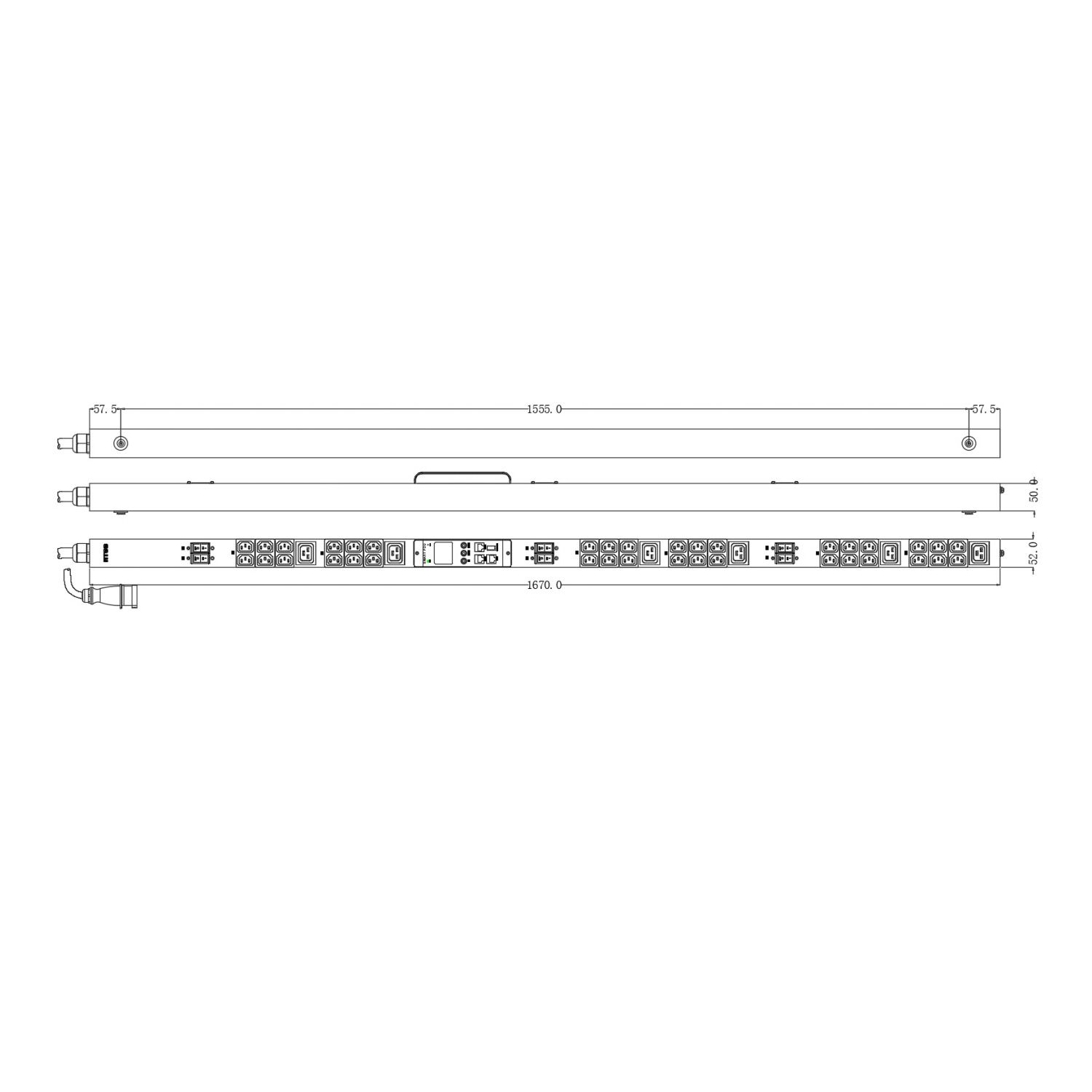 Блок распределения питания NTSS Metered, 3ф32А, 22кВт, 6 автоматических выключателей, (36)С13, (6)С19, 3м кабель с вилкой IEC 60309
