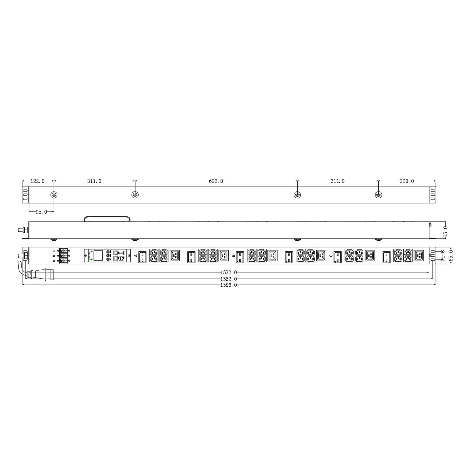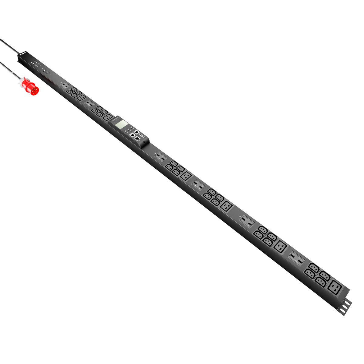 Блок распределения питания NTSS Metered Plus, 3ф16А, 11кВт, 3 автоматических выключателя, (24)С13, (6)С19, 3м кабель с вилкой IEC 60309, 1562х65х65 мм