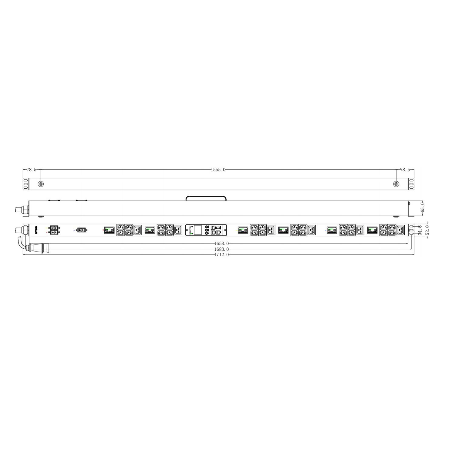 Блок распределения питания NTSS Switched, 1ф16А, 11 кВт, 3 автоматических выключателя, (24)С13, (6)С19, 3м кабель с вилкой IEC 60309, 1562х65х65 мм