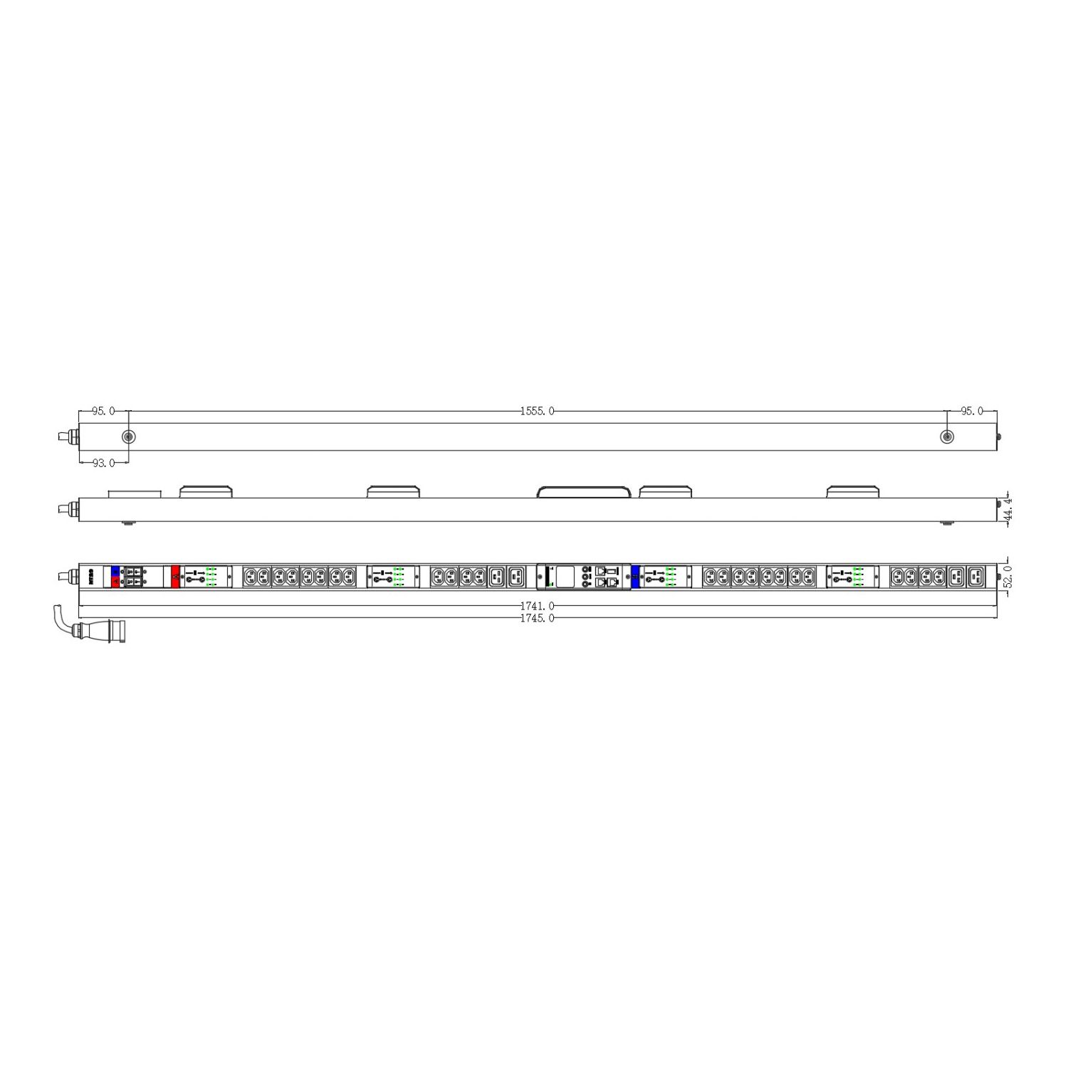 Блок распределения питания NTSS Switched, 1ф32А, 7.4кВт, 2 автоматических выключателя, розетки (24)С13, (4)С19, 3м кабель с вилкой IEC 60309, 1760.5х52х44.4 мм