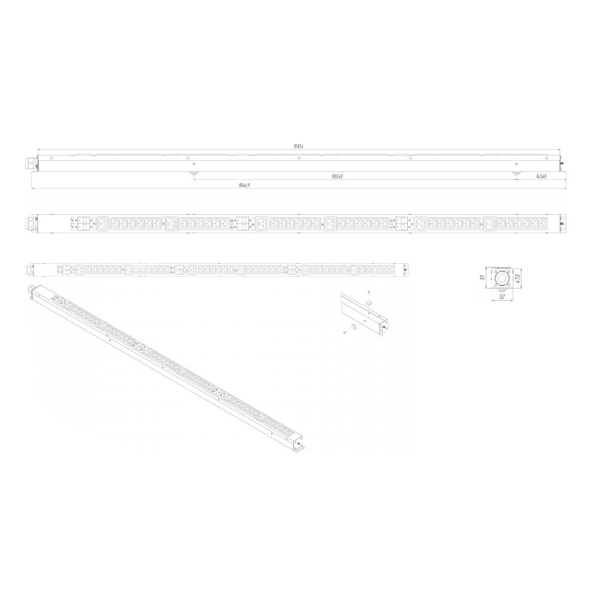 • 2 варианта крепления: безинструментальный монтаж с помощью пегтулов, а также угловые кронштейны на торцах PDU