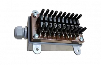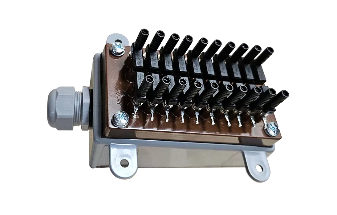 В каждом корпусе предусмотрено не более двух вводных трубок. Кабели подсоединяются через трубки и распаиваются к контактам снизу плинтов. Для герметизации пространства между корпусом и крышкой используется прокладка из картона, пропитанного парафином. Сверху корпуса могут быть установлены плинты типа ПН-10 или ПЭ-6 в зависимости от модификации.