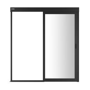 Комплект входной группы шириной 1000мм 42U с одностворчатой дверью представляет из себя каркас из толстого алюминиевого профиля с установленном на нем механизме раздвижения. Такие комплекты используются как правило для ограничения воздушного потока в системах изоляции с одним рядом шкафов, точнее в данном случае без правого ряда если смотреть снаружи – дверь отъезжает влево на существующий ряд шкафов. Так же такие группы применяются в случаях организации узких 1000мм между рядами горячих коридоров (2 ряда шкафов), встречающихся как при установке рядных кондиционеров в систему, так и в вариантах с построением изоляции с вертикальными боковыми стенками типа «факел». Высота 42U предполагает, что используется дверь позволяющая провезти через нее шкаф высотой от 2096мм и ниже, указанная высота соответствует большинству 42U шкафов на роликах. Разумеется, при типовом построении входная группа служит местом крепления и опоры для горизонтальных балок системы, идущих над шкафами, а в случае однорядных систем то и метом крепления профиля, идущего по стене или над панелями-заглушками.