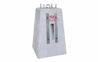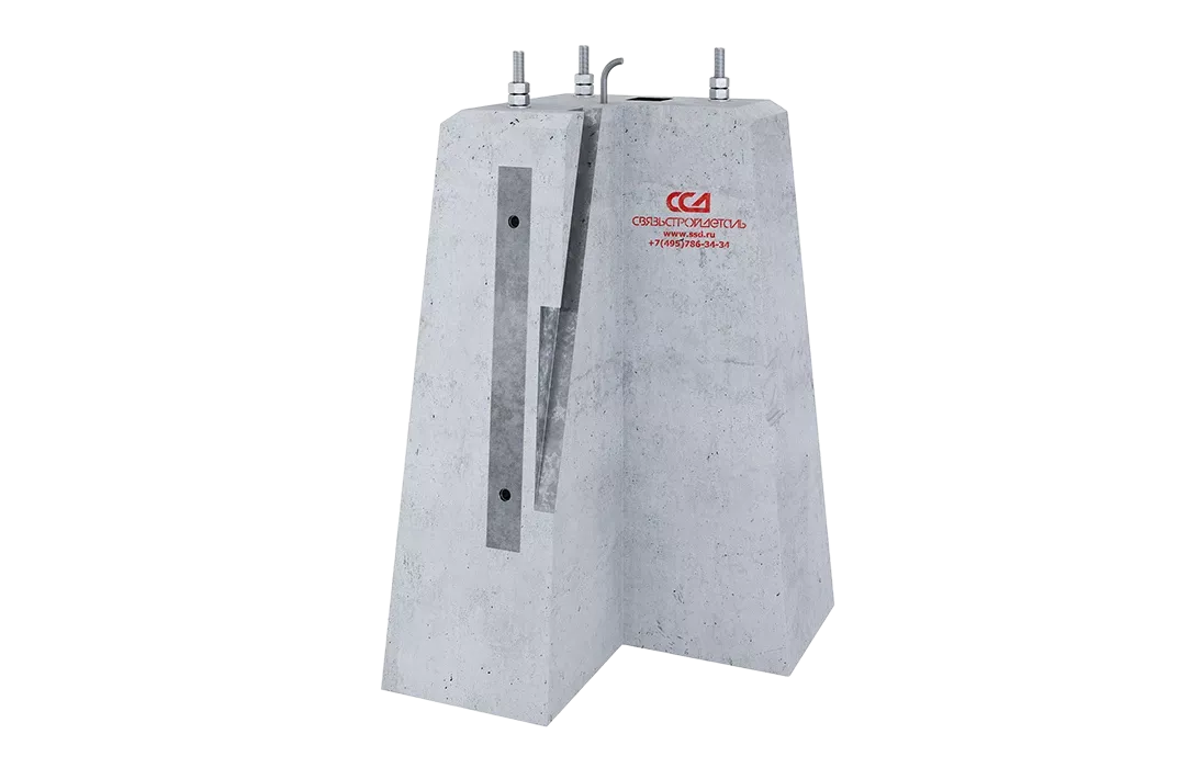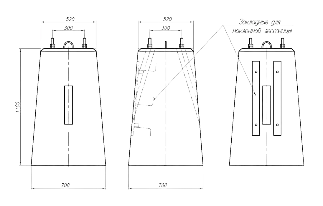 Представляет собой железобетонный блок с двумя закладными устройствами (квадратными трубами) и закладными элементами для крепления складной лестницы. Болты на которые накручена гайка, выступают над поверхностью блока на 100 мм.