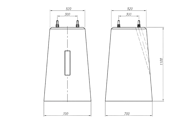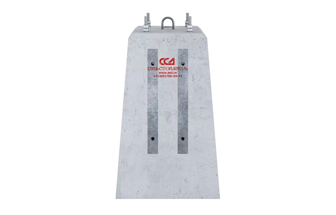 Представляет собой железобетонный блок с закладным устройством (квадратной трубой) и закладными элементами для крепления наклонной лестницы. Болты на которые накручена гайка, выступают над поверхностью блока на 100 мм.