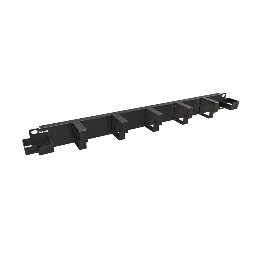 Горизонтальный кабельный органайзер 19", 1U, 7 колец глубиной 45 мм, металл, RAL 9005