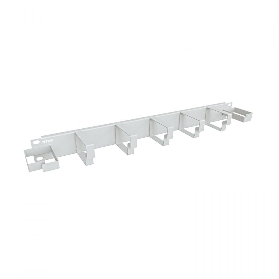 Горизонтальный кабельный органайзер 19", 1U, 7 колец глубиной 65 мм, металл, RAL 7035