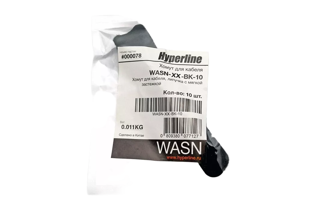 Hyperline WASN-180-BK-10 Хомут для кабеля, липучка с мягкой застежкой, 180x15 мм, черный (10 шт.)