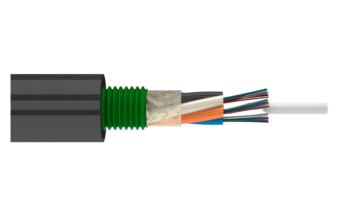 Конструктивно представляет собой повив оптических модулей вокруг стеклопластикового прутка защищенного стальной гофрированной лентой и наружной оболочкой из полиэтилена средней плотности. Свободное пространство в оптических модулях и в сердечнике кабеля заполнено гидрофобным гелем.