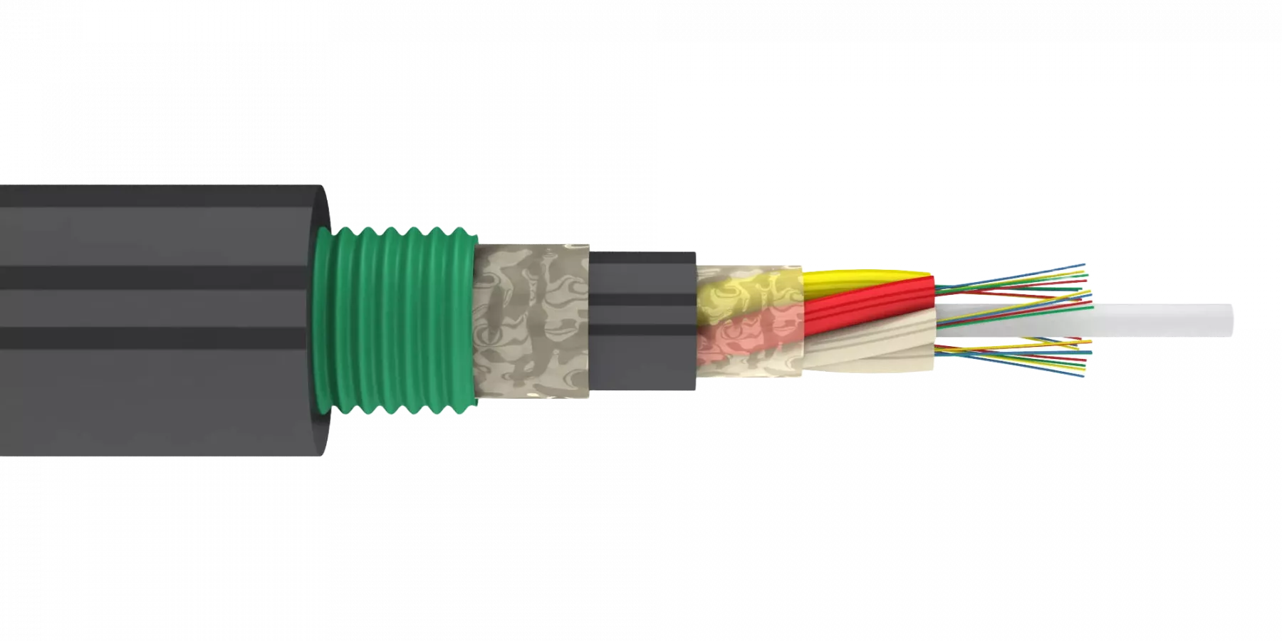 Конструктивно представляет собой повив оптических модулей вокруг стеклопластикового прутка, покрытый промежуточной полиэтиленовой оболочкой и защищенной стальной гофрированной лентой и наружной оболочкой из полиэтилена средней плотности. Свободное пространство в оптических модулях и в сердечнике кабеля заполнено гидрофобным гелем.