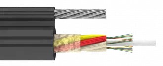 Повив оптических модулей вокруг стеклопластикового прутка защищен наружной оболочкой из полимерного материала. Кабель имеет выносной силовой элемент, выполненный из стального троса покрытого полимерной оболочкой.