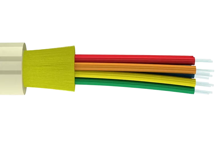 Кабель содержит пучок оптических волокон в буферном покрытии, на который наложен слой упрочняющих арамидных нитей. Оболочка кабеля изготавливается из полимерной композиции, не распространяющей горение, не содержащей галогенов с низким дымовыделением. Оболочка кабеля для внутренней прокладки изготавливается белым цветом.