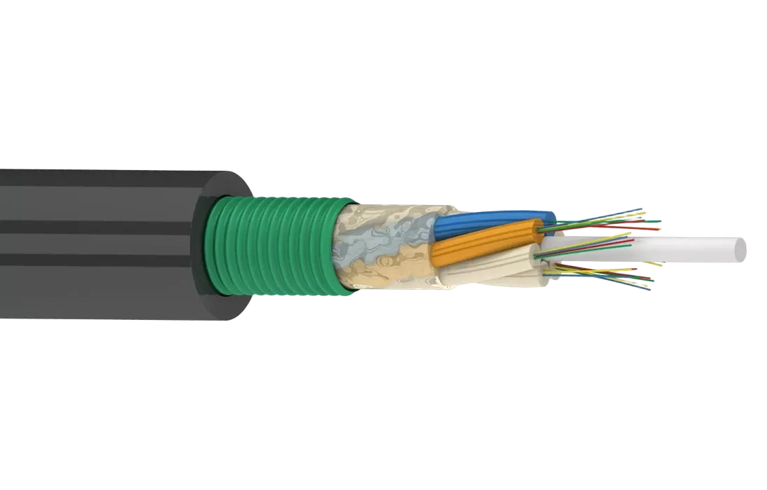 Конструктивно представляет собой повив оптических модулей вокруг стеклопластикового прутка, покрытый промежуточной полиэтиленовой оболочкой и защищенной стальной гофрированной лентой и наружной оболочкой из полиэтилена средней плотности. Свободное пространство в оптических модулях и в сердечнике кабеля заполнено гидрофобным гелем.