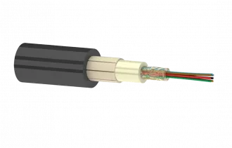 Центральный оптический модуль покрыт подушкой из упрочняющих стеклонитей и защищен наружной оболочкой из полимерного материала. Свободное пространство в оптическом модуле заполнено гидрофобным гелем.