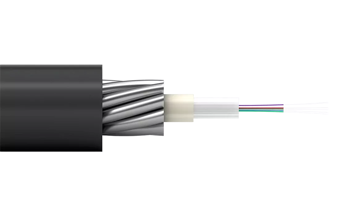 Кабель содержит центральный оптический модуль со свободно уложенными волокнами. Свободное пространство в оптическом модуле заполнено гидрофобным гелем. На центральный оптический модуль спирально накладывается броня из стальных проволок. Свободное пространство между проволоками заполнено гидрофобным гелем. На броню накладывается оболочка из полиэтилена высокой плотности.