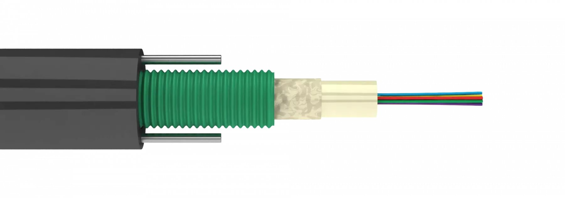 Конструктивно представляет собой центральный оптический модуль, защищенный стальной гофрированной лентой и наружной оболочкой из полиэтилена средней плотности, в которую встроены силовые элементы из стальных проволок. Свободное пространство в оптическом модуле и под гофрированной лентой заполнено гидрофобным гелем.